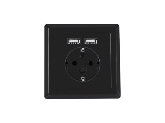 • GNIAZDO PODTYNKOWE 230V POJEDYNCZE + 2X USB 2.1A SCHUKO CZARNE LANBERG